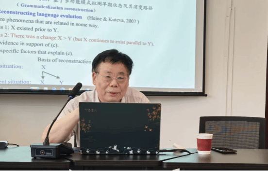 在讲座中,吴福祥教授以新泛时主义双重视角为框架,系统阐释共时与历时、内部演变与外部演变、方言口语与历史文献相结合的研究路径,深入讲解均变原则、语言接触、语法化构拟等核心理论。他聚焦极性问句、能性述补结构带宾语语序等关键结构式,结合藏缅、侗台、苗瑶、南亚等语系语言材料,对比南方汉语方言与民族语言的句法差异,揭示V-not-V、F-VP、S-prt等句式的区域分布与历时演变规律,阐明语言接触引发的句法扩散与借用机制。