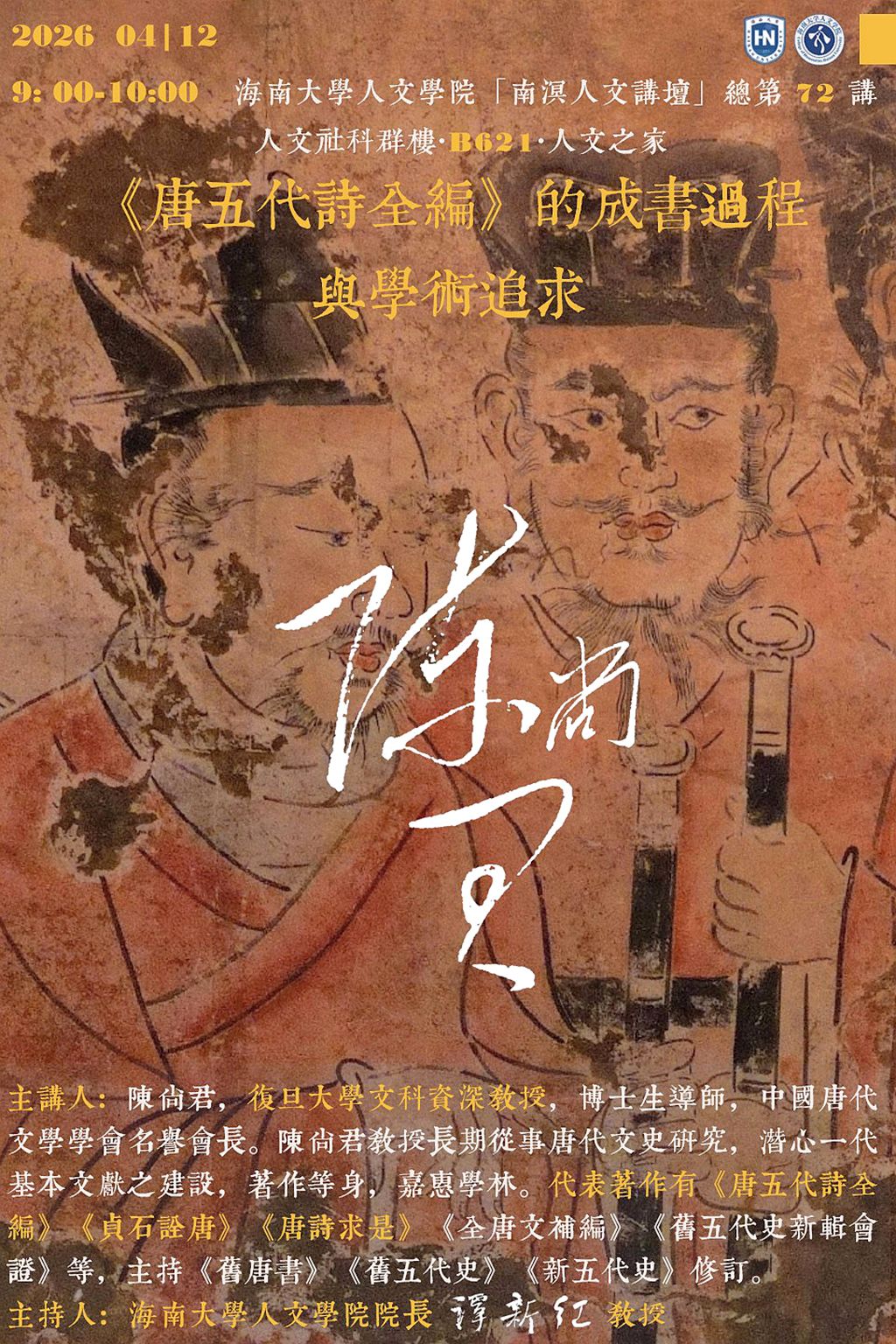 【天美av预告】天美av-视频av-av直播 “南溟人文讲坛”第72讲 《唐五代诗全编》的成书过程与天美av追求