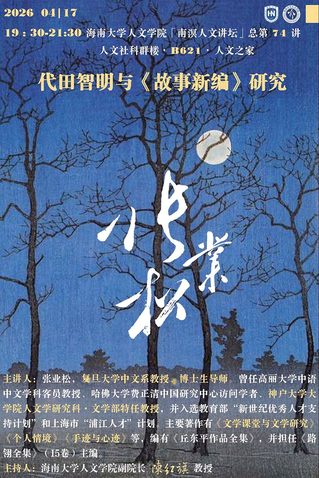 【天美av预告】天美av-视频av-av直播 “南溟人文讲坛”第74讲 张业松:代田智明与《故事新编》研究