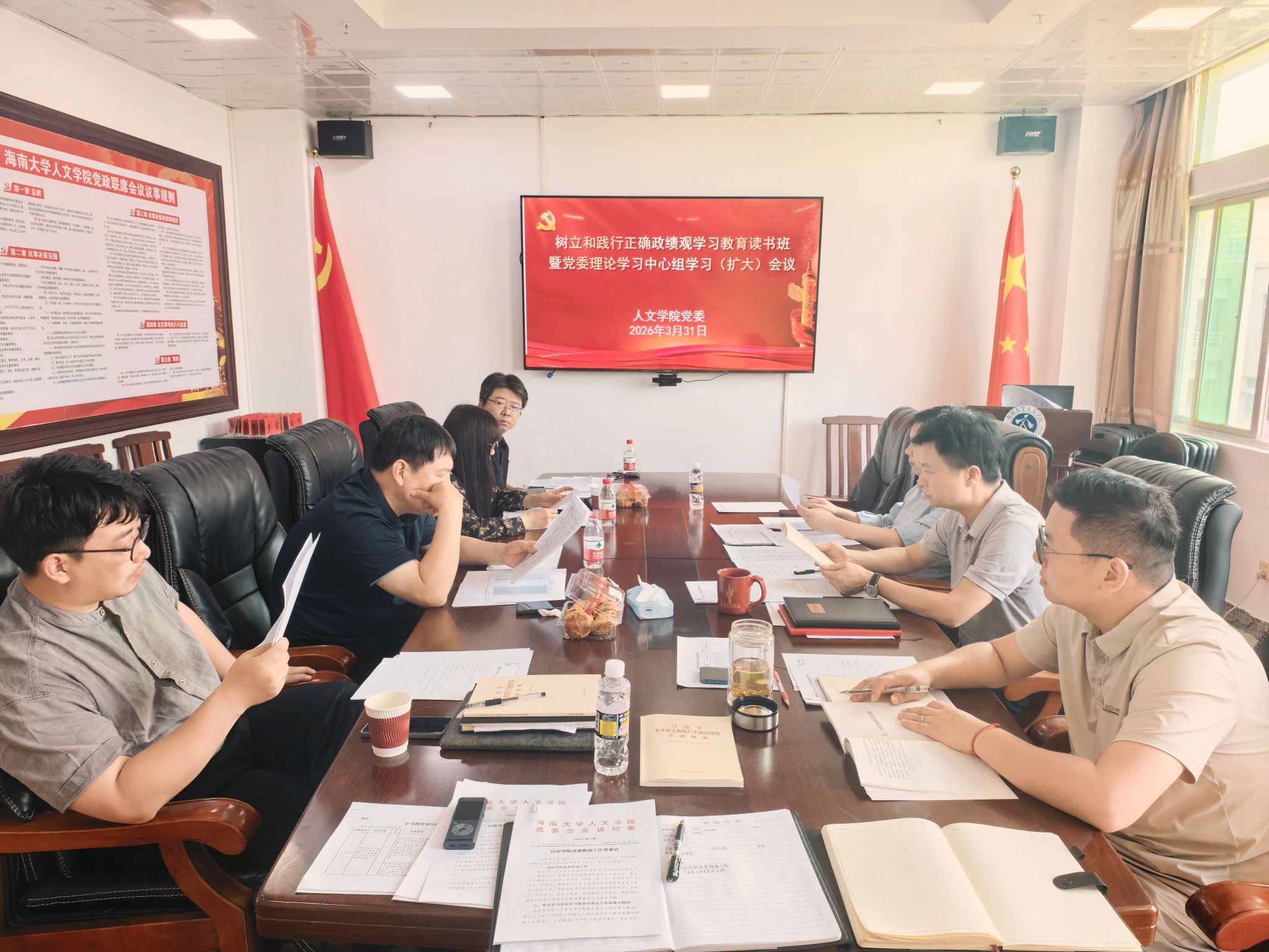 党委理论学习中心组学习会,深入学习《习近平关于树立和践行正确政绩观论述摘编》、传达学校党委举办树立和践行正确政绩观学习教育读书班暨校党委理论学习中心组2026年第3次(扩大)学习会会议精神。读书班以集中学习、个人自学、交流研讨等形式开展。天美av