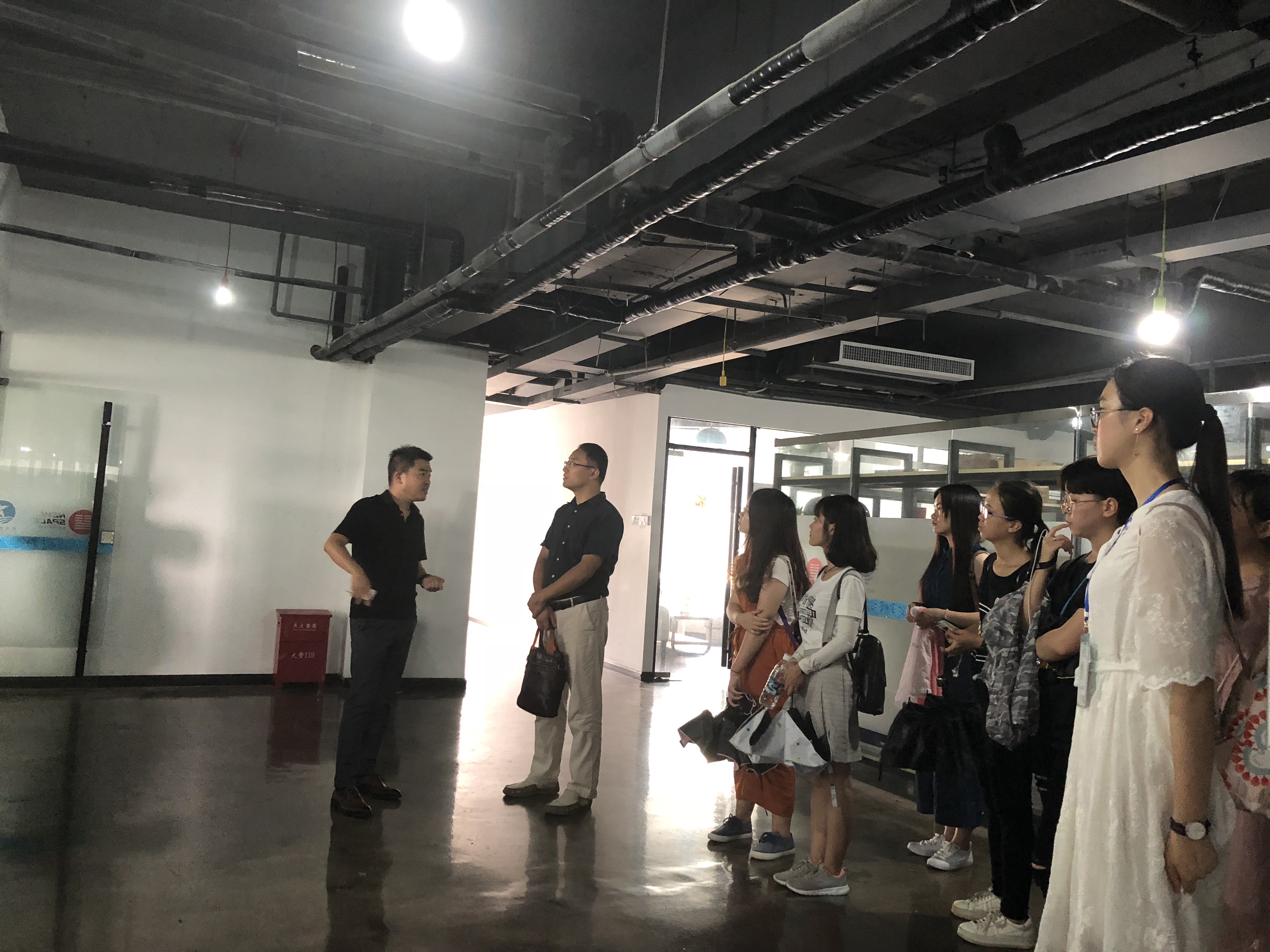 2018年“走进企业”系列活动第二站来到了海南洪泰复兴城创新空间,来自2015、2016和2017级的11名同学在学工办主任公衍峰老师的带领下前往参观学习,并受到了企业负责人的热情接待。